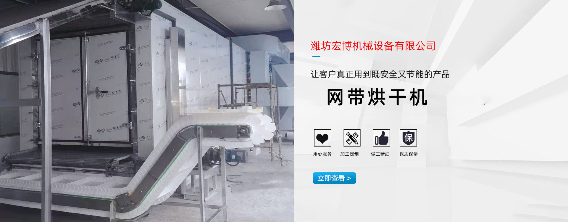 宏博公司主要產(chǎn)(chǎn)品有:網(wǎng)(wǎng)帶烘干機(jī)、食品烘干機(jī)、滾筒烘干機(jī)、隧道窯、烘干箱、燃?xì)鉄犸L(fēng)爐、高大車間供暖設(shè)備、礦用防爆電加熱器等。